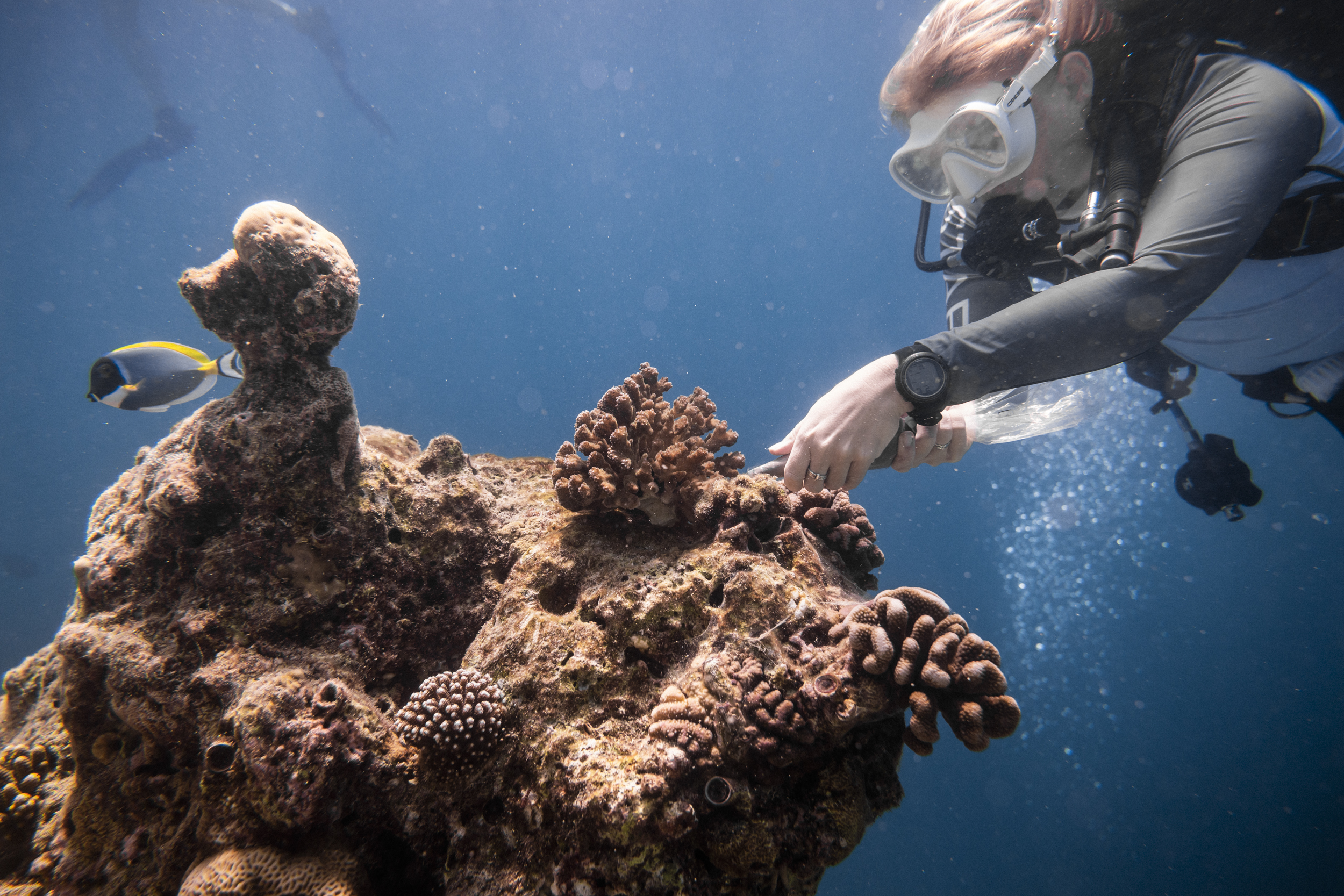 So how does it work in practice? The marine team is applying a wide toolset of coral restoration techniques at scale. We grow corals in underwater rope nurseries, use microfragmentation and aquaculture husbandry along with other tools to revive critical areas of the reef that are important for island protection and that can be visited by snorkelers and divers. You can also join us for one of our dedicated workshops and get some hands-on experience in the latest coral restoration techniques.